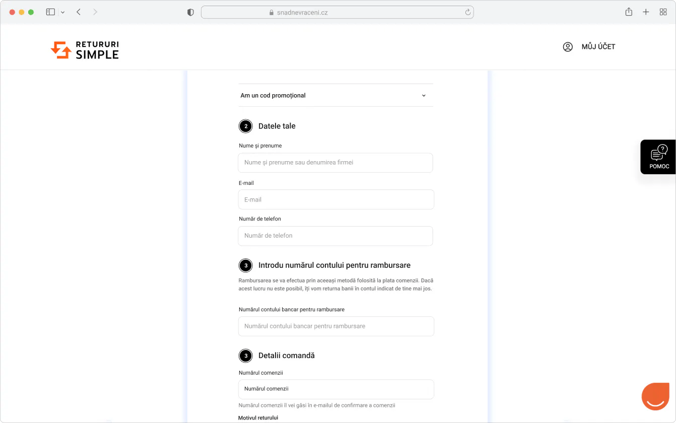 Acesta va respecta designul și identitatea vizuală a magazinului, oferind o experiență coerentă pentru clienți. Puteți adăuga câmpuri suplimentare și instrucțiuni specifice, care vor facilita identificarea expedierilor și vor simplifica procesul de retur. Dacă doriți, întregul proces de retragere poate fi gestionat direct prin formularul nostru.